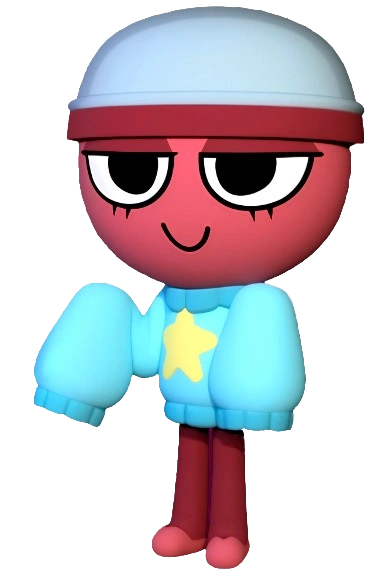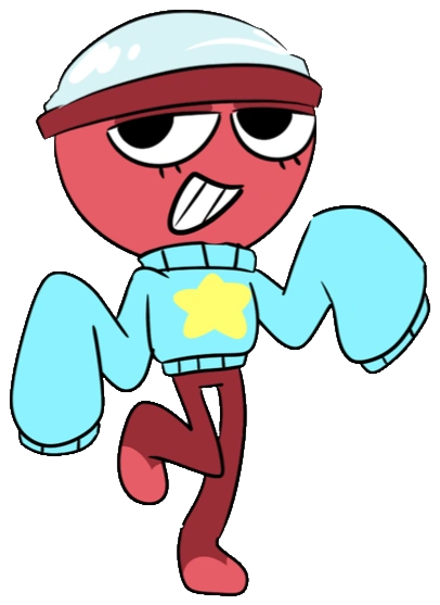 Gigi is a Toon that takes on the appearance as a red gachapon, for her clothing, she wears a large blue sweater to the point that it covers her arms completely, the blue sweater with a large yellow star in the middle, along with a dark shade of blue of her neck and sleeves. She has black eyelashes on the bottom of her eyes and has dark red eyelids.