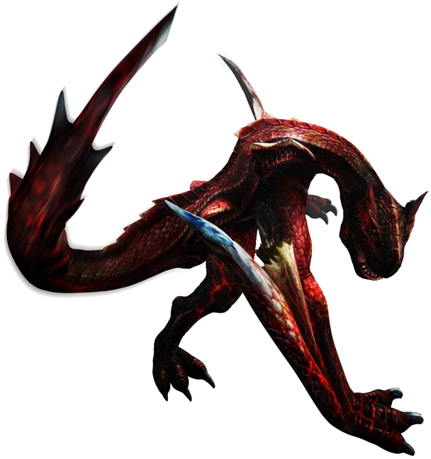 Molten Tigrex are distinguished from regular Tigrex by their significantly larger sizes and vivid red hides. They possess deep blue wing tips, claws and wing membranes. When enraged their skin is covered in vivid, angry red arteries.